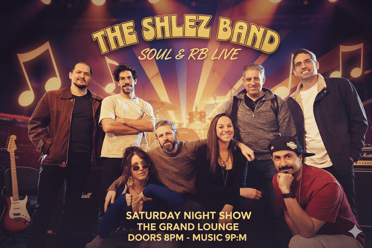 The Shlez Band brings together eight seasoned musicians and longtime friends united in creating an original, quality project. Three powerhouse vocalists—Yam Gronich, Keren Grotzky, and Almog Kapach—are backed by five veteran instrumentalists.